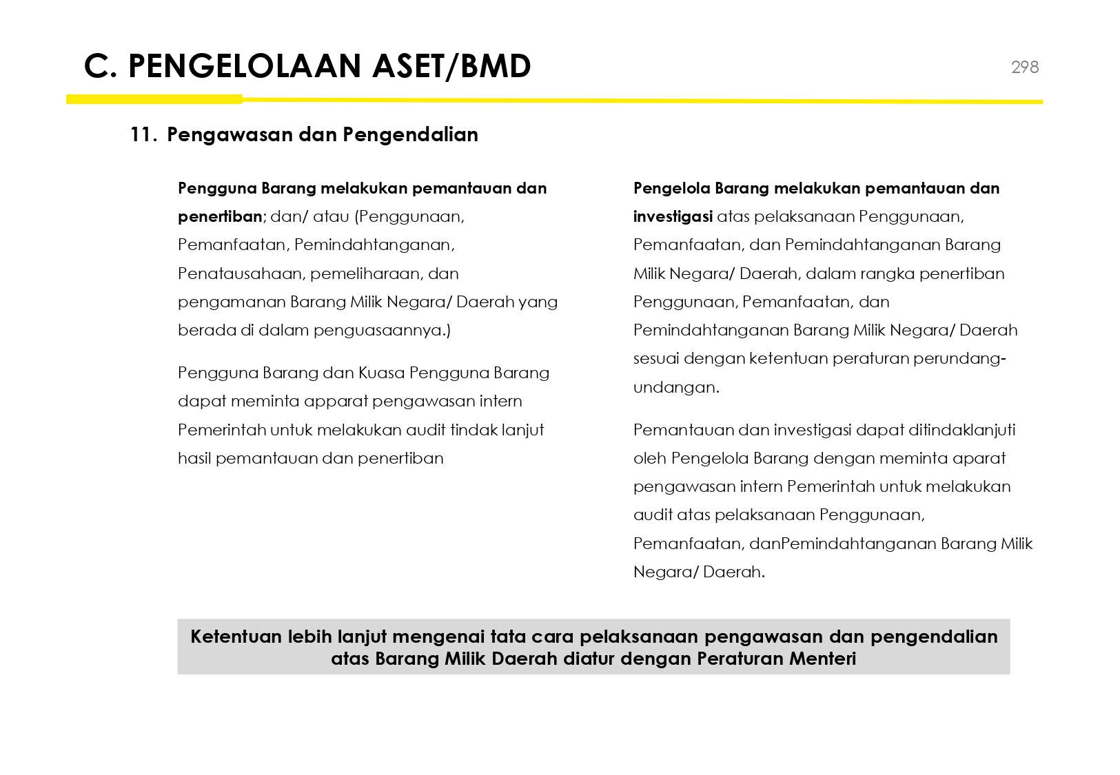 Pengelolaan Barang Milik Pemerintah, Negara/Daerah dilaksanakan berdasarkan asas fungsional, kepastian hokum, transparansi, efisiensi, akuntabilitas dan kepastian nilai (Peraturan Pemerintah No 27 Tahun 2014 Psl 3).